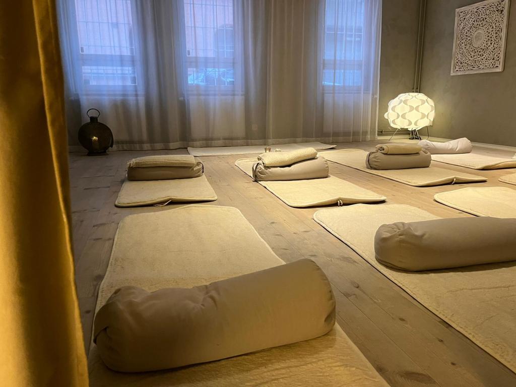 Ta med dig din egen yogamatta. På Brännkyrkagatan finns det yogamattor att låna om du skulle glömma.